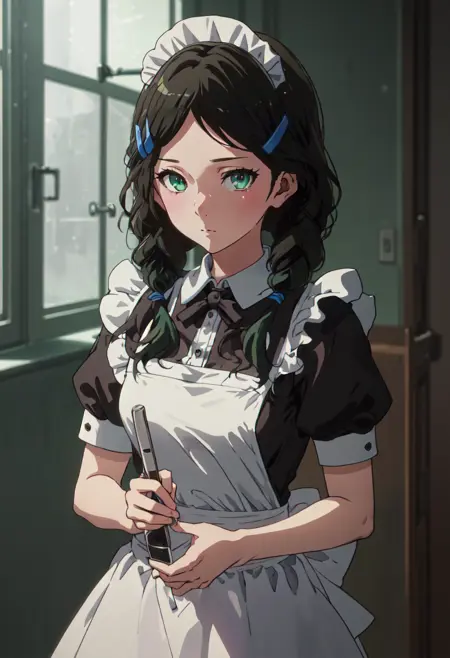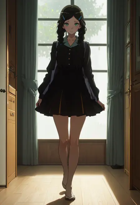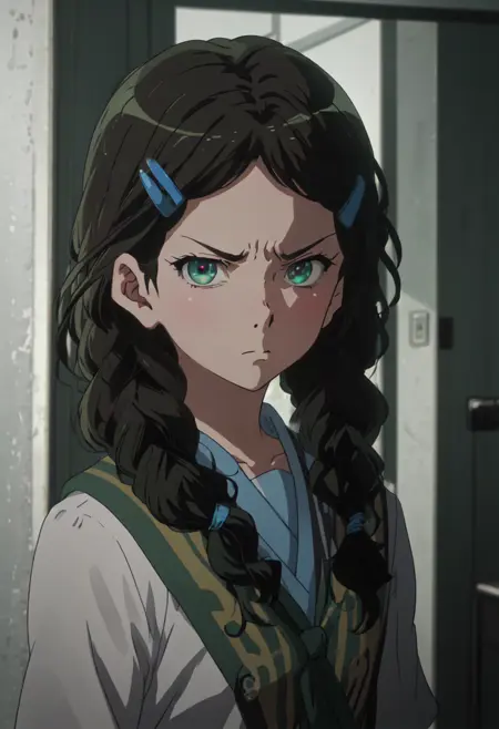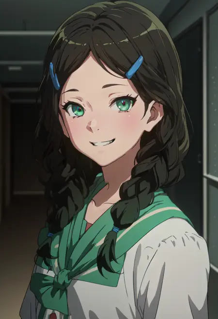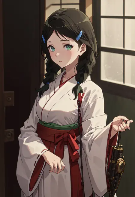 - プリューンされたキャラクタータグは、髪飾り、ヘアクリップ、ロングヘア、ブレイド、黒髪、緑色の目、ツインブレイド、肩越しの髪です。キャラクターの主要な特徴(例:髪の色)が安定しない場合、これらのタグをプロンプトに追加してください。