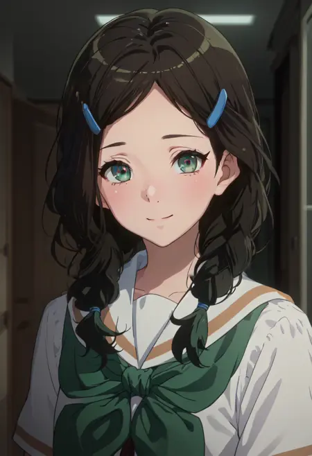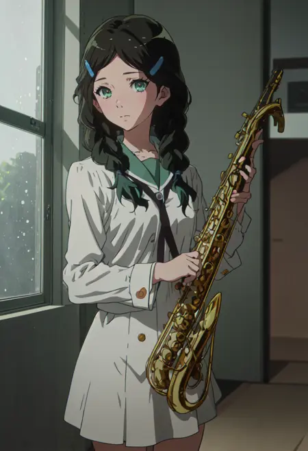トリガー語はsaitou_aoi_soundeuphonium、プリューンされたタグはhair_ornament, hairclip, long_hair, braid, black_hair, green_eyes, twin_braids, hair_over_shoulderです。あるとき、一部の特徴(例:髪の色)が安定しない場合、これらをプロンプトに追加してください。