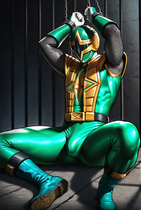 n4vy thunder ranger, 헬멧, 장갑, 벨트, 바디수트, 마스크, 토쿠사쓰, 피쉬넷, 검은 바지, 부츠