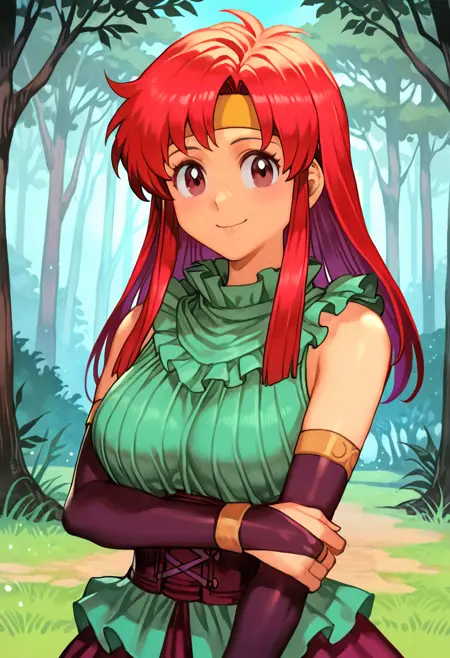 该模型使用了她在 DK1 和 DK3 中的两次游戏形象进行训练。不幸的是,似乎存在一些服饰混叠现象,尤其是 DK1 的服饰更容易向 DK3 的服饰渗透,尤其是在提示不够精准时。请随意尝试使用提供的标签。若使用艺术家标签,颜色可能不稳定,因此建议在使用时更具体地描述颜色。