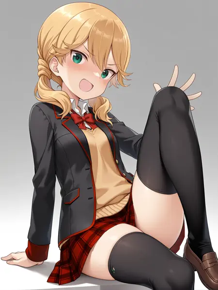 트리거 워드: k_akane, blonde hair, green eyes, low twintails,