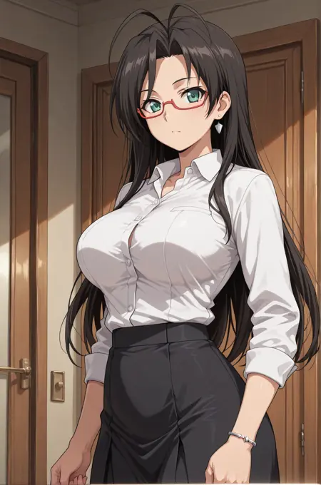 official style, sharp, intricate details, hyperdetailed, ultra-detailed, detailed, excellent Quality, excellent Details, excellent Anatomy, masterpiece, Epic, high definition, 8k, perfect lighting, Chisato_XL, 1girl, hair between eyes, jewelry, glasses, semi-rimless eyewear, red-framed eyewear, under-rim eyewear,
