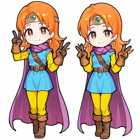 I struggled to think of which of the dozen possible names to give this till I remembered the outfit is actually equipable items in Dragon Quest IX and a future titles with crossover content for player character customization. Incidentally, this also confirms both versions are wearing pants (rather than tights or a single bodysuit with a tunic over it).