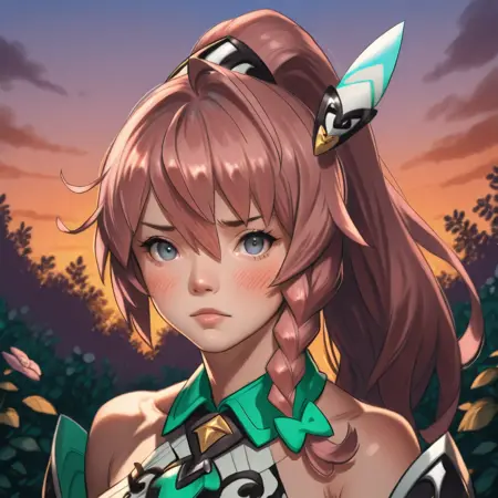 触发词: Louise Dragalia、粉发、马尾、头饰,