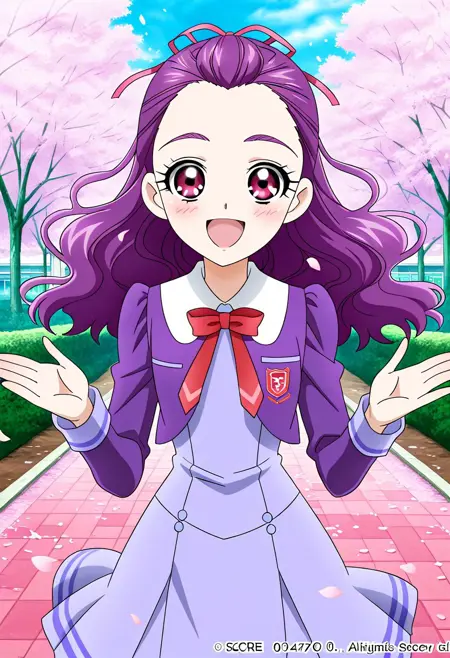 쿠루미, 교복, 긴 머리, 속눈썹, 머리리본, 보라색 치마, 활