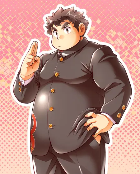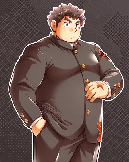 触发词:chubbyprotagonist, housamo, chubby, masculine male, spikey hair, anime hair, brown hair,