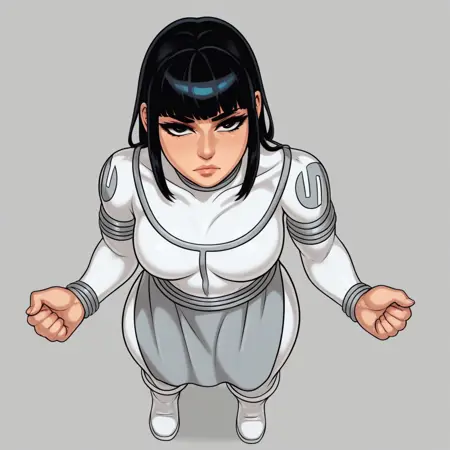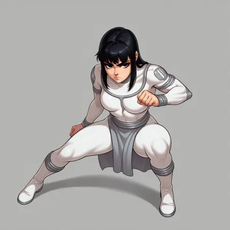 Viltrumite_Mark, black hair, black eyes, viltrumite_bodysuit, white boots,