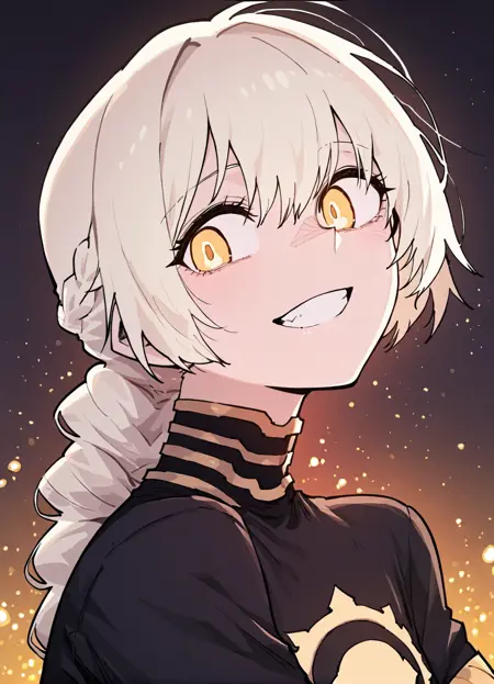 Libur, 1 girl, solo, golden eyes, pale blonde hair, thick side braid, hair ornament,
