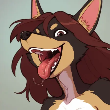 dog, dog girl, chihuahua, black and tan fur, white belly fur, brown hair, long hair, black nose, brown eyes, dog ears, dog tail,