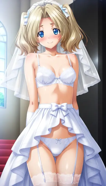 東条まひろ、青髪、長い髪、波状、ポニーテール、紫の目