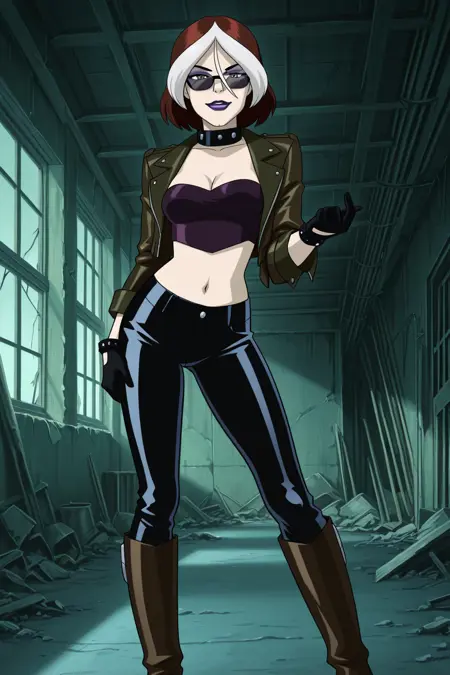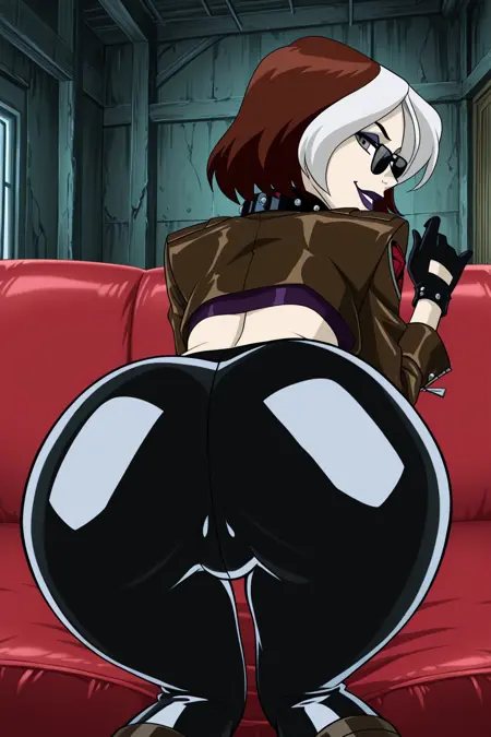 *エディターのメモ:この衣装でヘアスタイルを再現しようとすると、髪型がうまく生成されません。より近い外観を得るには(slicked back hair, white streak, mullet:2)を使用できますが、結果は保証されません。