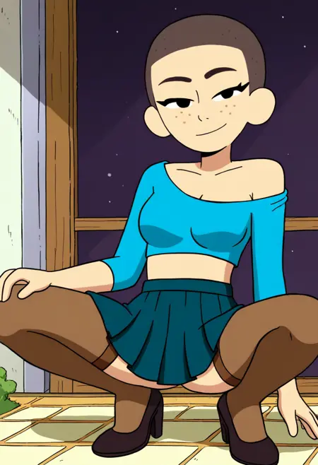 Kat from Craig of the Creek. Illustrious and NoobAI give more cartoony flat color feel, while Pony gives a lot more detail but differing style. For Pony strong recommend considering Flat Color Anime add-on. HiRes Fix is not required.