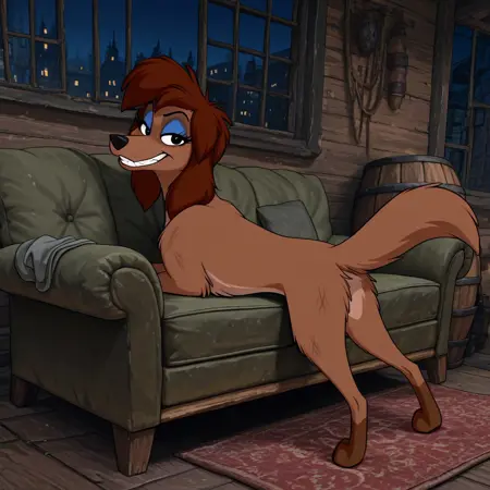 Rita, dog, canine, black eyes, brown hair, two tone fur, blue eyeshadow, eyelashes