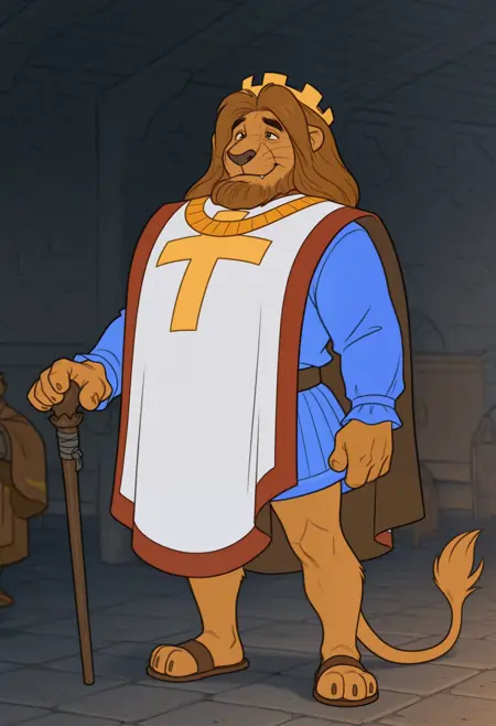 Main outfit: richard's crown, richard's tabard, richard's tunic, richard's sandal, richard's necklace, richard's cane,