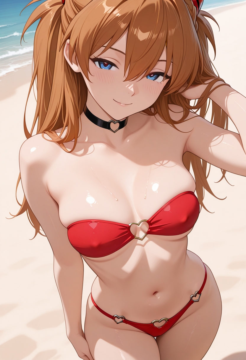 此服装LoRA为你的角色添加心形O型环比基尼和项圈。