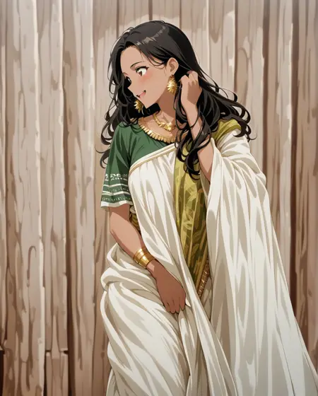 この衣装の起源は、インダス川流域文明まで遡ることができ、当時は綿で作られ、さまざまな色に染められていました。その後、中国から蚕がもたらされ、シルクで作られるようになりました。色、巻き方、素材、刺繍、アクセサリーは、サブカルチャーや場面によって異なります。フォーマルな衣装では、サリーは重い刺繍や宝石、豪華なゴールドアクセサリーで飾られる一方、日常の衣装は、何千年も前から変わらないシンプルな綿のままです。