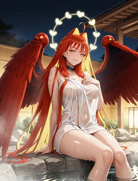| 训练词汇 | Aph0od1F4te,1girl,solo,ahoge,makeup,orange eyes,parted lips,medium breasts,two-tone hair,red hair,blonde hair,ahoge,very long hair,colored inner hair,hair intakes,red_nails,已复制! dress,navel,ribbon,jewelry,bare shoulders,earrings,choker,white dress,off shoulder,high heels,center opening,bracer,bracelet,short dress,stripes on thighs,已复制! wings,multiple wings,feathered wings,red wings,已复制! |