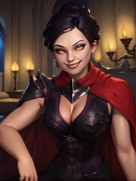 盔甲,黑色紧身胸衣,斗篷,露胸,带爪手套,黑色鞋履
