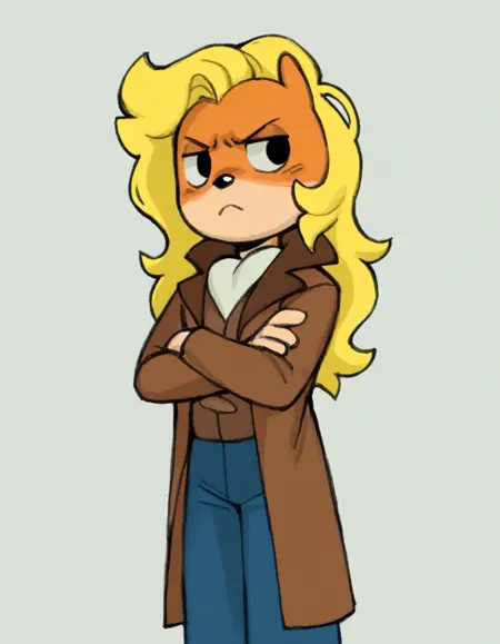 brown bomber jacket, lapels, puffy ascot, blond hair, black eyes, muscular male