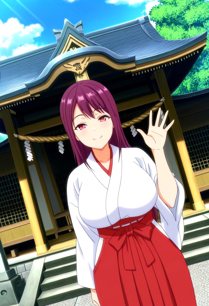 Shizuka,purple hair, long_hair, red eyes, huge_breasts,