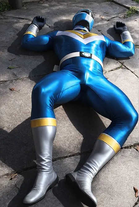 ヒーローが敗北し、地面に横たわっているというLoRA。このLoRAは、いくつかのリアルな特撮写真で学習されているため、他のスタイルのモデルと組み合わせて使用することを推奨します。
