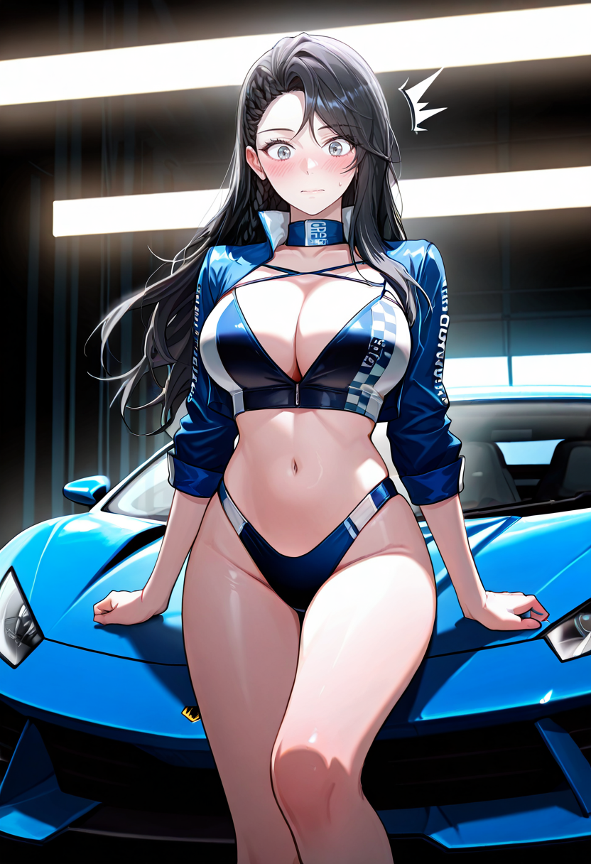 Asha Pervaz, grey eyes, black hair, long hair, swept bangs, hair between eyes, right braid hair behind ear