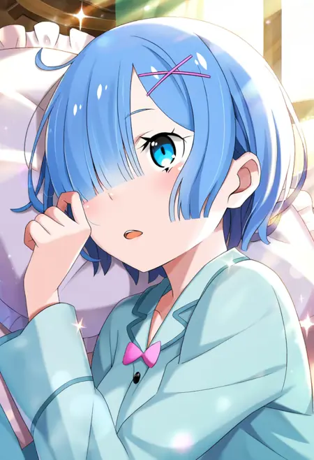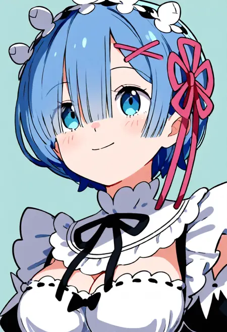 高度角色还原:经过精心训练,精准捕捉雷姆的标志性特征——温柔的蓝色双眼、经典的蓝色短发(包括迷人的“一缕头发遮住眼睛”风格),以及独特的发饰(如 X 形发夹或粉色丝带)。