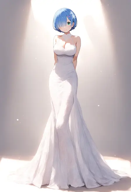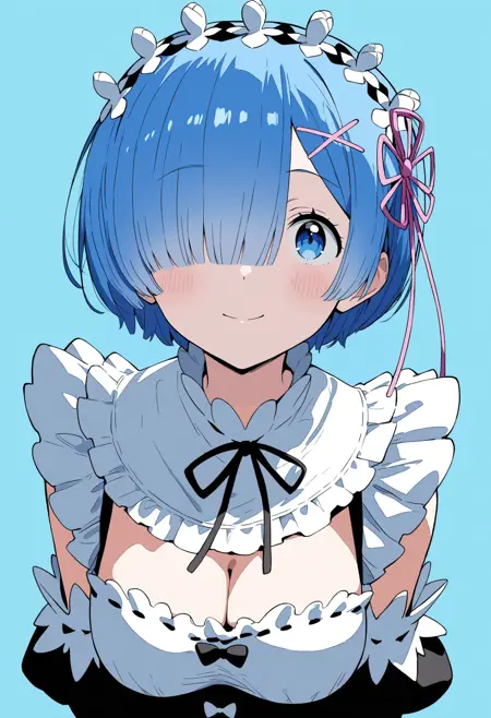 高度角色还原:经过精心训练,精准捕捉雷姆的标志性特征——温柔的蓝色双眼、经典的蓝色短发(包括迷人的“一缕头发遮住眼睛”风格),以及独特的发饰(如 X 形发夹或粉色丝带)。