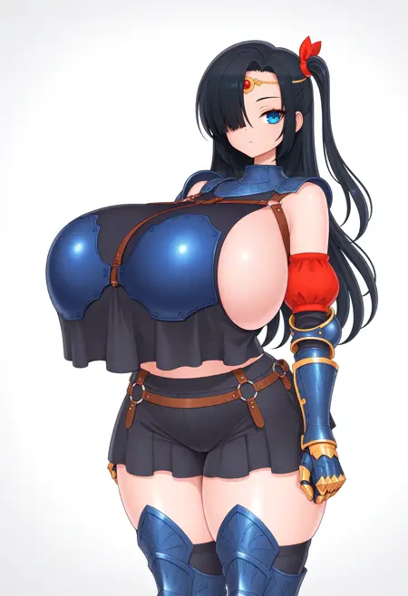 - huge breasts / wide hips / shiny skin / curvy / huge ass