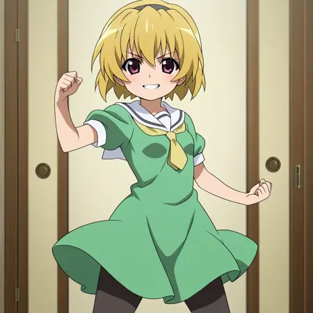 これは、アニメ『ひぐらしのなく頃に』のキャラクター、北条沙都子のLORAモデルです。