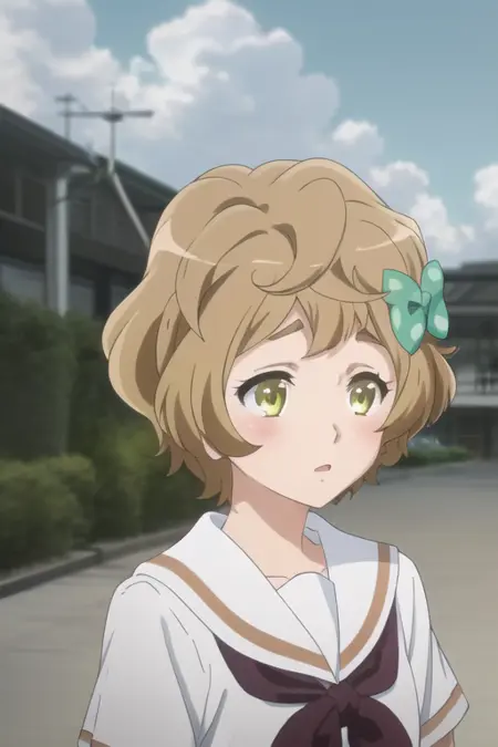 Trigger Words: kawashima sapphire, light brown hair, short hair, greenish-lime eyes