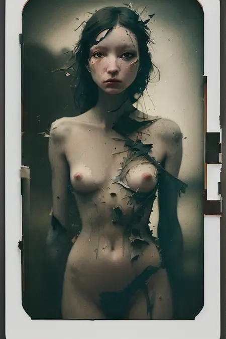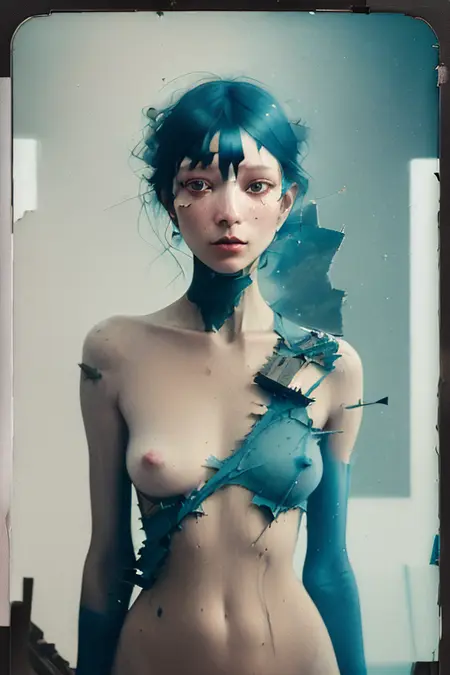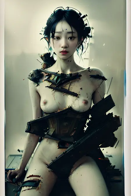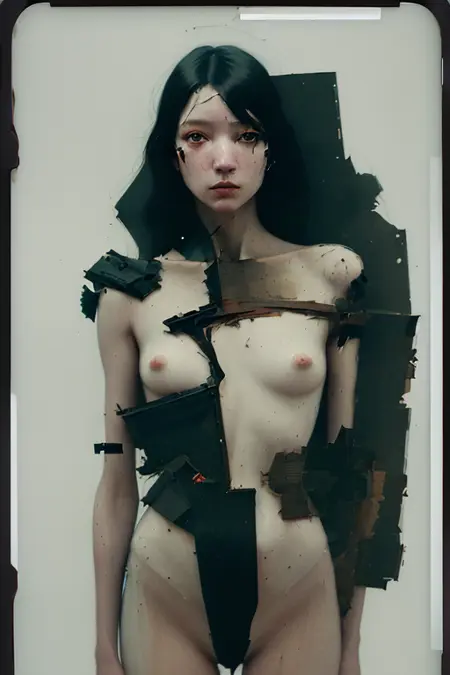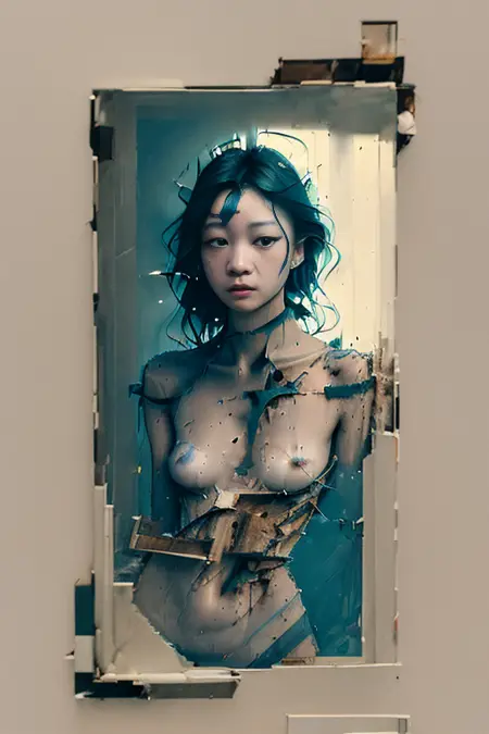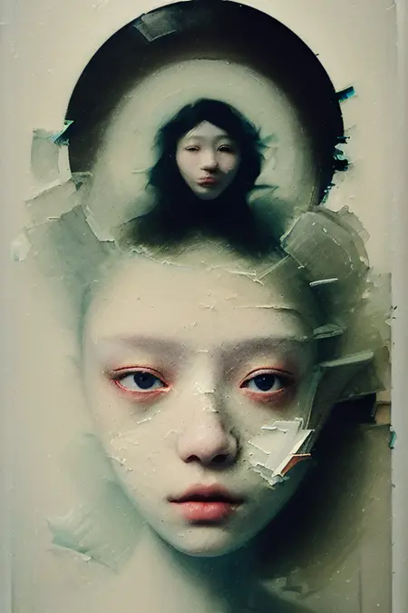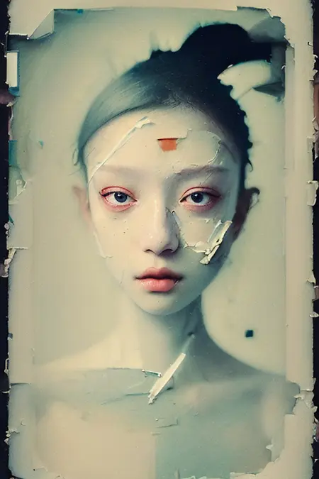 Experimental model to get a specific look for the portrait. Trained on synthetic images of glitched, destroyed portraits.