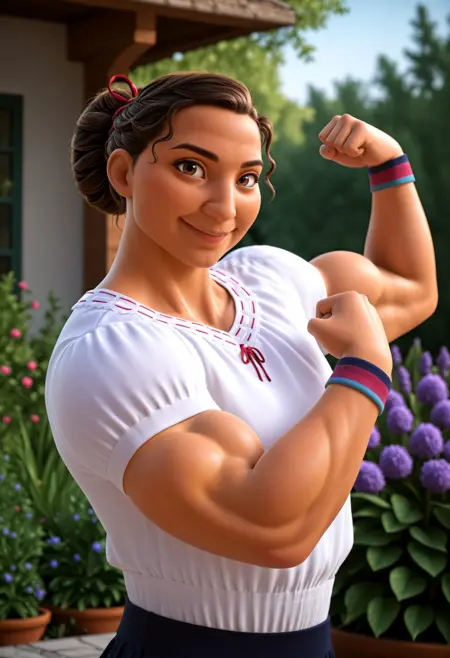 키워드: luisamadr, 갈색 눈, 갈색 머리, 근육질인 여성, 머리를 단추로 묶음, 흰색 셔츠, 파란색 팔찌, 파란색 치마