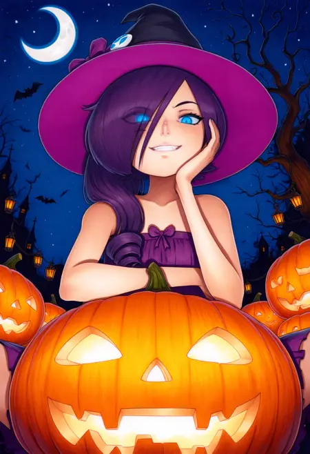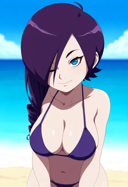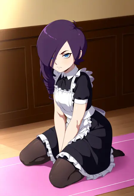 基础提示词:1girl, zonetan, blue eyes, hair over one eye, drill hair, purple hair, long hair