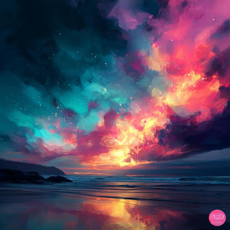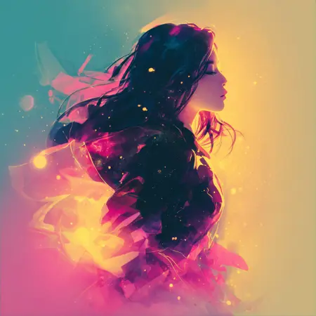 超現実的で夢のような絵画、流れるような構図、デジタル水彩スタイル、層状の色調、
