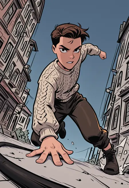 It's meant to be a cartoonist style, like comic strips done with dip pen and brush, with bold lines and spotted black areas for shadows.