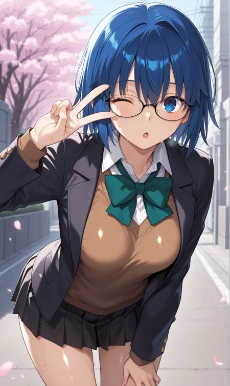 ciel (tsukihime), blue eyes, short hair, hair between eyes, blue hair, glasses