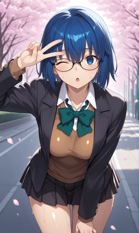 ciel (tsukihime), blue eyes, short hair, hair between eyes, blue hair, glasses