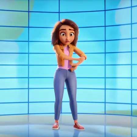 Sam Greenfield, 3D, screencap, full body, female, lightly tanned skin, medium-length hair, chestnut brown hair, brown eyes