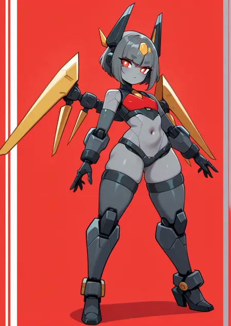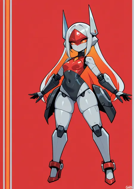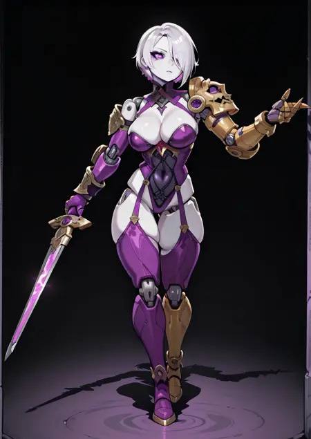可选辅助词:机器人、机械、机器人女孩、机器人关节、玩偶关节、(颜色)巩膜、白皮肤、银色皮肤、无嘴巴、头盔、装甲