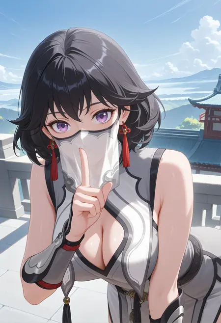 yuanliu, 短髪, 黒髪, 赤い耳輪, 紫の目,