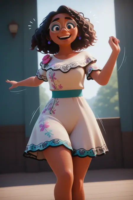 - Latest version (V2) attempts to align Mirabel's appearance with how she is depicted in the film. However, Illustrious seems to struggle with this kind of 3D style. I tried quite a few different models, but none seemed to really get it authentic to the film. I am still doing more research on this.