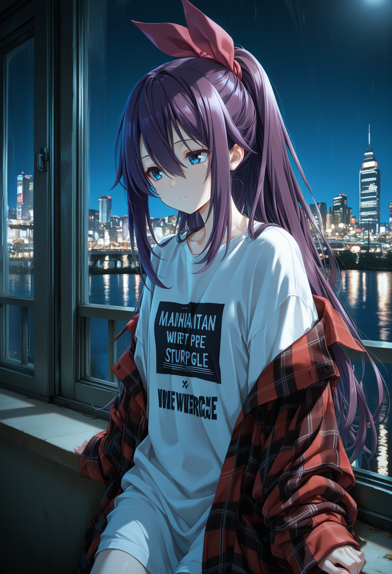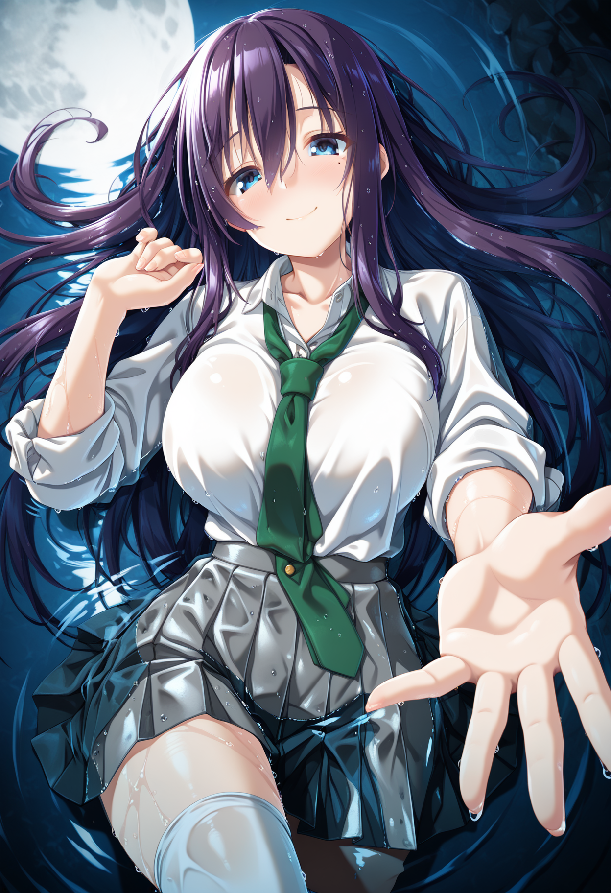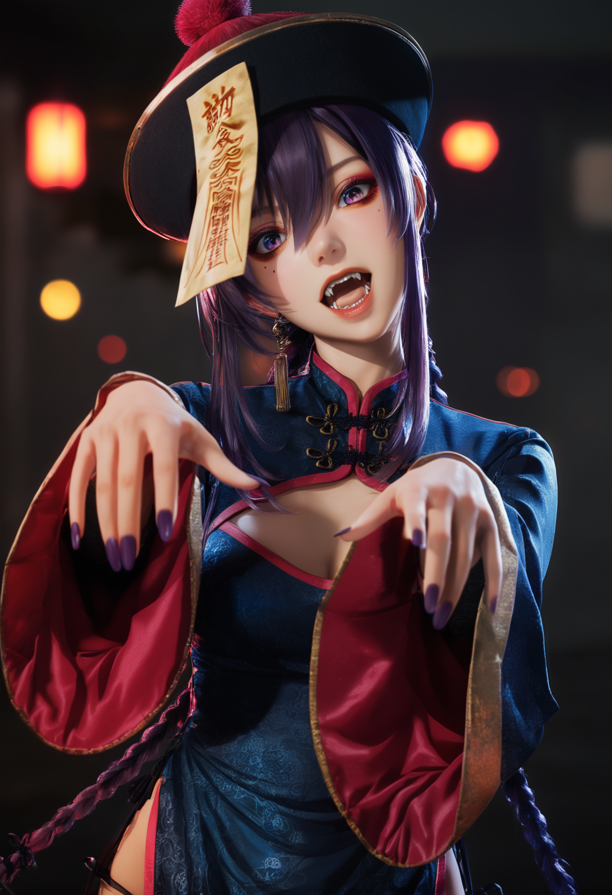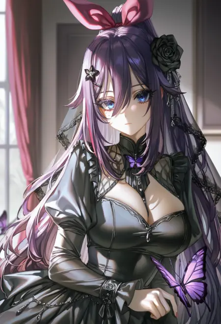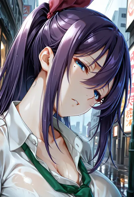 Character: osakabe rei \(haison\), blue eyes, mole under eye, colored eyelashes, purple hair,
