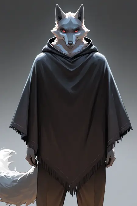 DeathPIB, Wolf, Black Sclera, Red Eyes,White Fur,long snout,bara,muscular