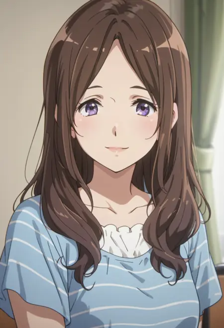 トリガーワード: niiyama satomi, 長い髪, 茶色の髪, 紫の目
