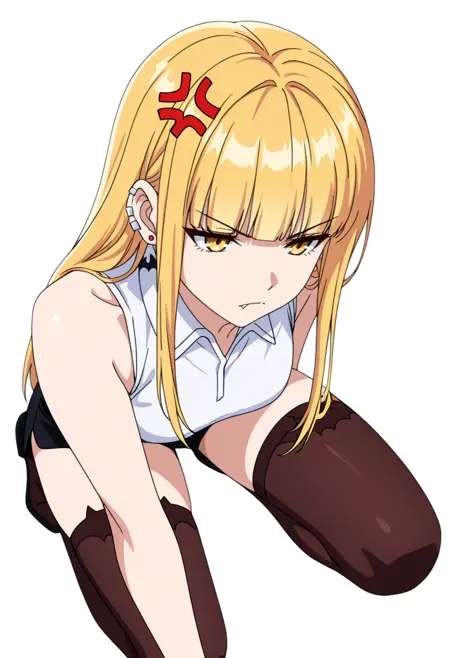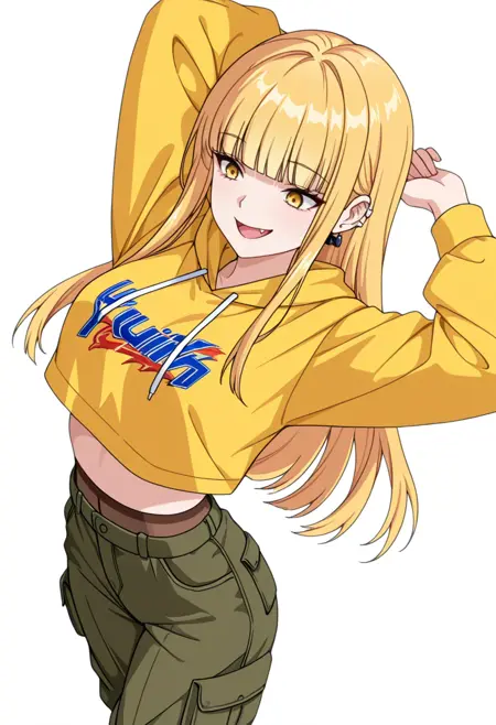 ruriko_cnr,enh_cnr,1girl, blonde hair, long hair,blunt bangs, yellow eyes, fang, ear piercing,earrings,