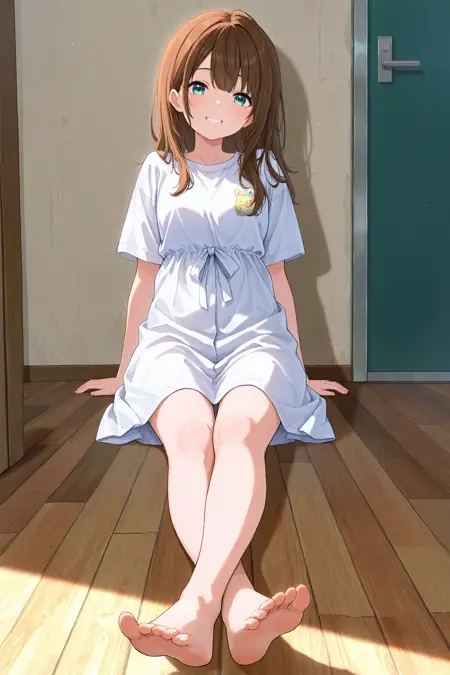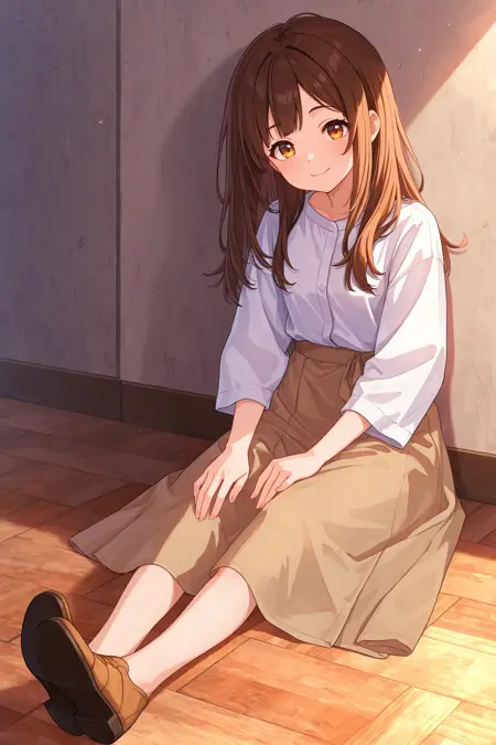 바닥에 앉는 경우: sitting, outstretched legs, on floor, full body
