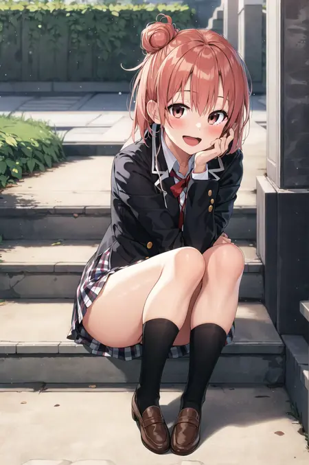 프레이즈 유이가하마 유이를 사용하고, 웨이트는 0.6~0.8 사이로 설정하세요. 자연스러운 외모를 위해서는 학교 복장을 추가해 주세요. 자켓을 원한다면 프롬프트나 음성 프롬프트에 추가하면 됩니다. 헤어밴드가 잘못된 위치에 나오는 경우, 아마 LoRA의 웨이트를 높여야 할 필요가 있을 수 있습니다.