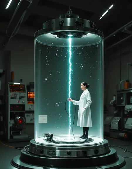 atomfuture, retrofuturistic laboratory with atomic symbols
