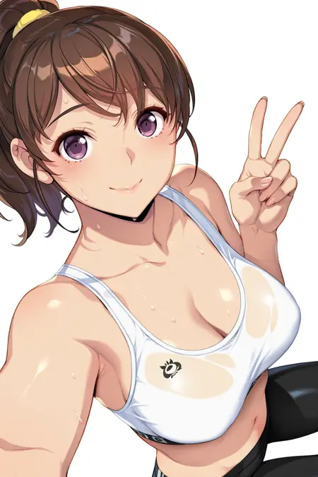trigger words:c9x3t7m5q8,brown hair,purple eyes,ponytail